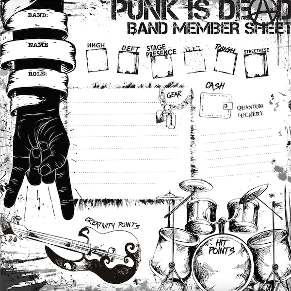 Punk is Dead is a TTRPG set in the Un-united Kingdom where the world is going to sh*t in a sack cart, and music is all you've got left. Just like those four brave bozos on the Titanic, you're gonna keep playing until your last amp falls into the abyss.